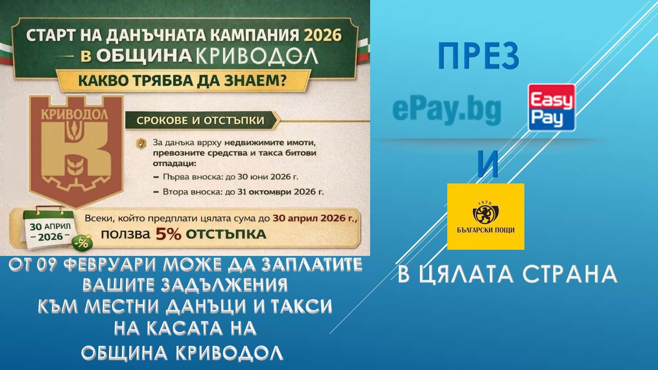 • на касите на EasyPay и онлайн на ePay.bg;